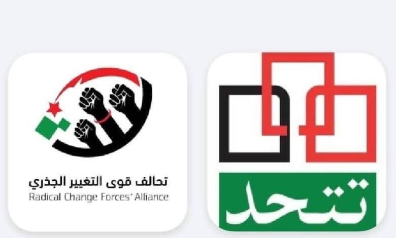 اعلن تحالُفِ المُكَوّناتِ المدنيةِ لوقفِ الحربْ “تَتَّحِد” وتحالُف قُوى التغييرِ الجِذري عن عقد إجتِماع إسفيريّ مُشتَرَك الأربعاء الموافق 8 أكتوبر 2025، في إطارِ الجهودِ الوطنيةِ الراميةِ إلى بِناءِ إصطِفافٍ مَدَنيٍّ واسعٍٍ يُسهِمُ في إنهاء الحربِ ومعالجةِ جُذورِها واستعادةِ مسارِ الثورة.